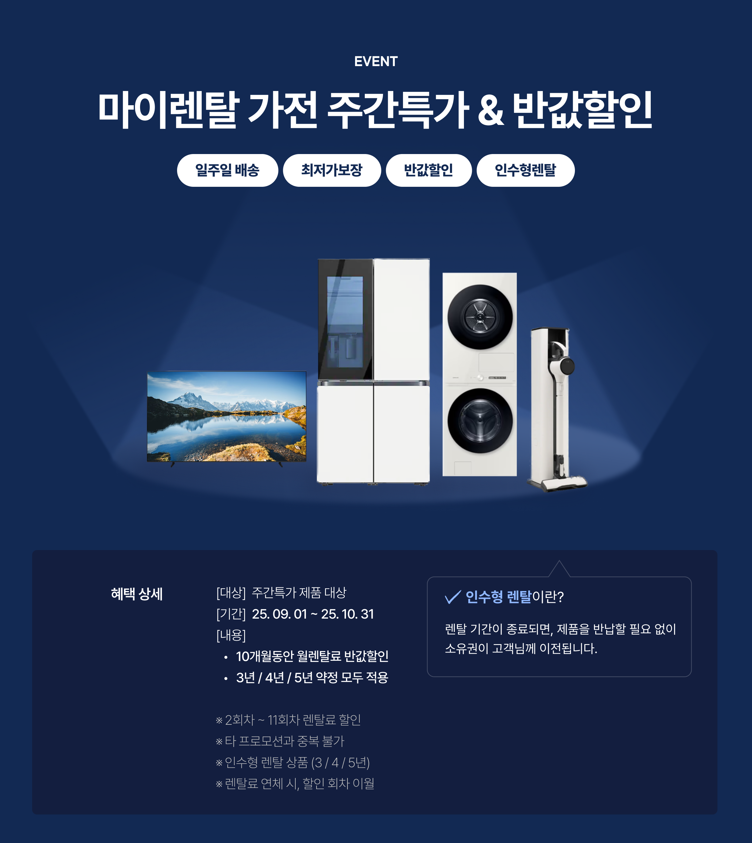 돌아가기 마이렌탈 가전 주간특가&반값할인