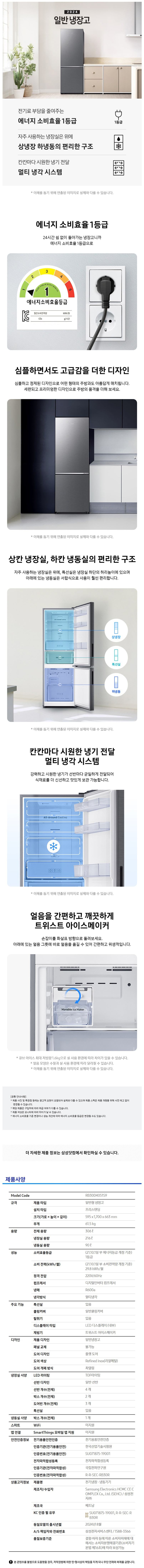 [주간특가] (1등급) 삼성전자 2도어 일반냉장고 306L 리파인드이녹스