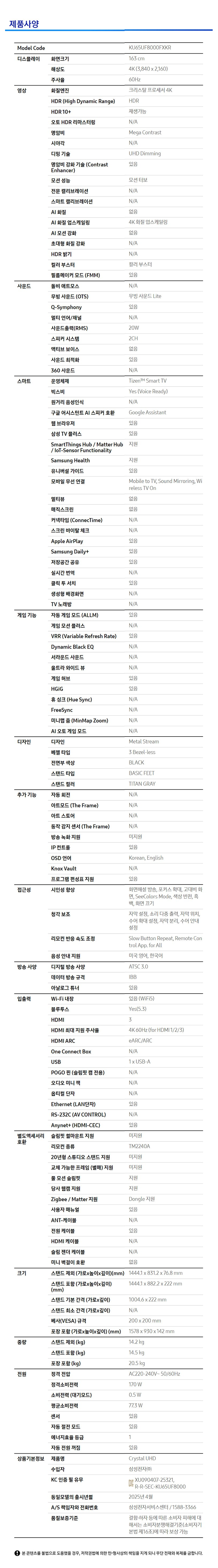 [주간특가] (1등급) 삼성전자 25년형 4K UHD Crystal TV 65인치